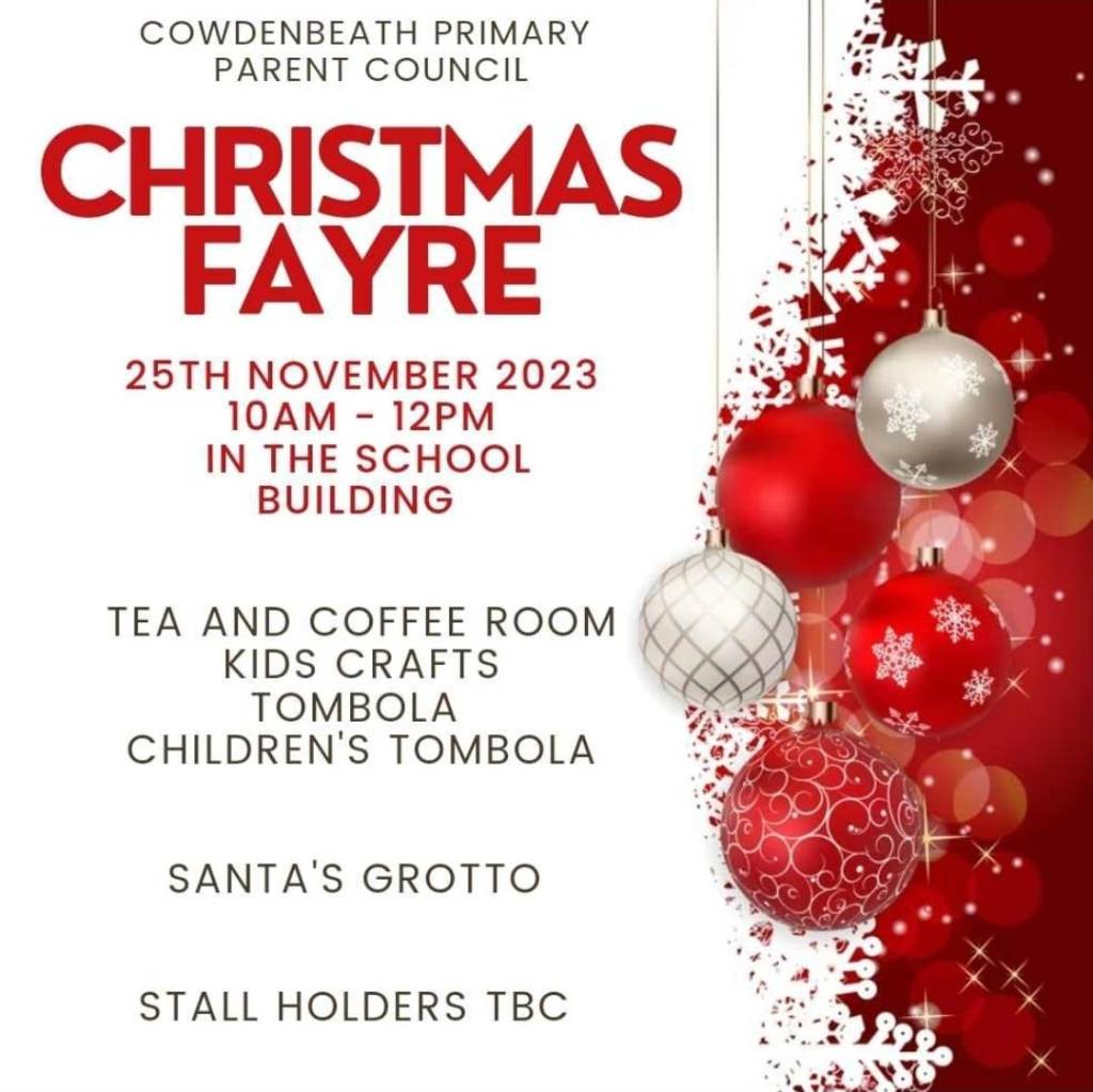 Cowdenbeath Primary School are set to have a Santa’s Grotto and Christmas Fayre at the school on Sat 25th November, from 10am til 12noon. There’s kids crafts, tombola, stalls and a hot cuppa for anyone dropping in!