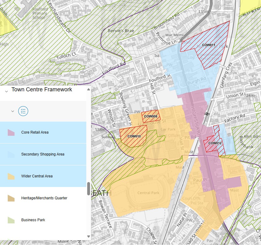 Cowdenbeath’s Town Centre was designated in the Fife Local Plan 2017 as having 3 distinct zones – a core retail area, secondary shopping area and wider town centre area. These zones have changed significantly since 2017 and we would argue the core retail area zone must extend north to include the Lidl and B&M development and shops in the north of the High Street to bring renewed investment and focus across the town centre.