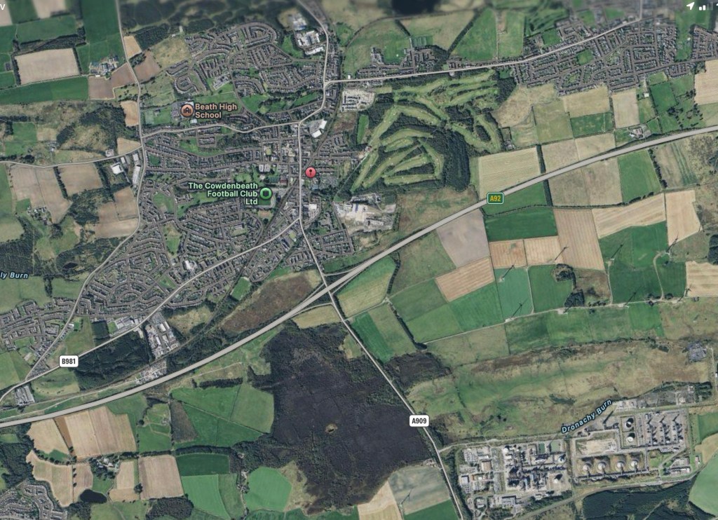 To our South we have the large petrochemical plant at Mossmorran operated by Shell and Exxon and the nearby Little Raith and Mossmorran wind farms, with 11 large wind turbines. On 18th November 2025, Exxon announced the closure of the Mossmorran plant, commencing April 2026.